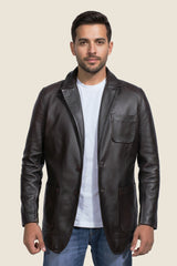 Men's Black Wine Leather Blazer