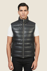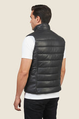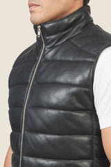 Black Leather Reeves Puffer Vest
