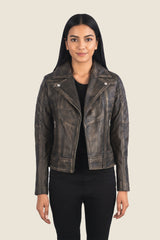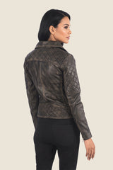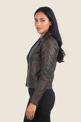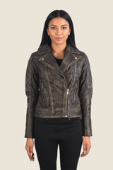 Women's Quilted Distressed Brown Leather Biker Jacket
